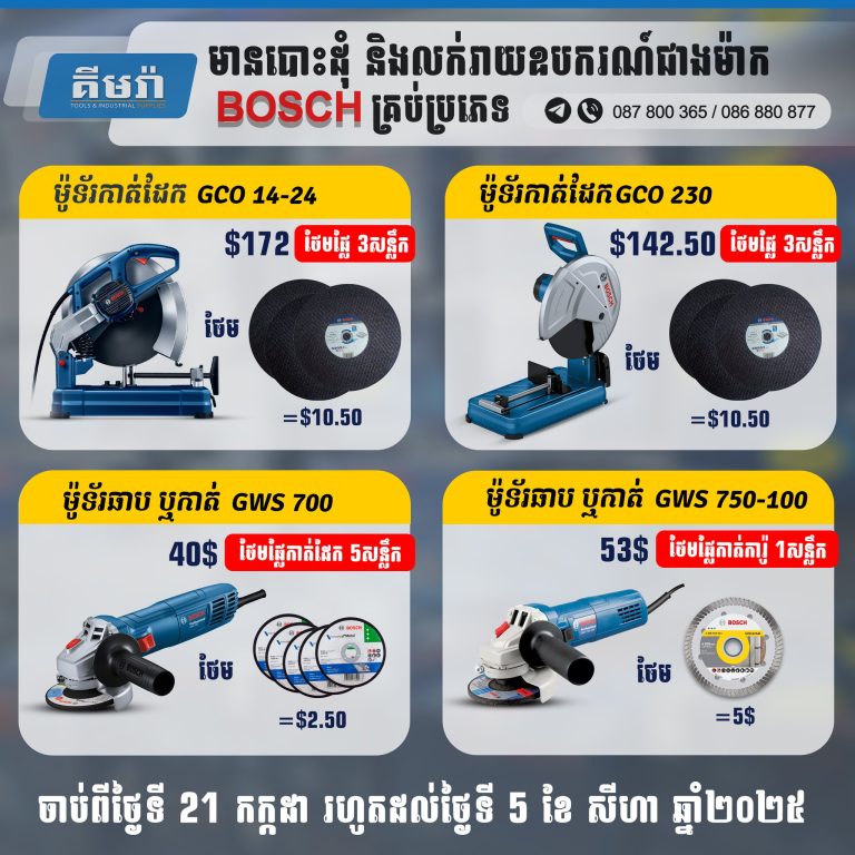 Coming Soon ... YEAR END SALE ការផ្តល់ជូនពិសេសចុងឆ្នាំ រីករាយចុងឆ្នាំជាមួយកម្មវិធី ទិញថែមៗ ទិញផលិតផលស៊ីកាកាន់តែច្រើន ទទួលបានការថែមជូនកាន់តែច្រើន! ពិសេសសម្រាប់កម្មវិធីនេះ • រាល់ការទិញ Sikaceram® 99 FLOOR & WALL KH... -30% SDS Max Rotary Hammer 1700W Rotary Hammer Drill RH17001 – ម៉ូទ័រស្វានបុក INGCO $380.00 Original price was: $380.00.$266.00Current price is: $266.00. -18% CS2358 Ingco 235mm Circular Saw – ម៉ូទ័រជ្រៀកឈើរ 2.3តឹក $108.00 Original price was: $108.00.$89.00Current price is: $89.00. -32% NC589N Nikatec 235mm Circular Saw – ម៉ូទ័រជ្រៀកឈើរ 2.3តឹក $102.50 Original price was: $102.50.$70.00Current price is: $70.00. -40% Orbital Sander NIKATEC NC944 – ម៉ូទ័រខាត់ $109.00 Original price was: $109.00.$65.00Current price is: $65.00. -33% TOTAL BISCUIT JOINTER 950W (TS70906) – ម៉ូទ័រលកតាណាបឈើរ TOTAL $63.00 Original price was: $63.00.$42.00Current price is: $42.00. -38% 1.5mm PVC insulated, non-sheather cable – Taisin ខ្សែភ្លើង Hu An 1C-1.5 Black $24.00 Original price was: $24.00.$15.00Current price is: $15.00. -38% 1.5mm PVC insulated, non-sheather cable – Taisin ខ្សែភ្លើង Hu An 1C-1.5 Yellow $24.00 Original price was: $24.00.$15.00Current price is: $15.00. -26% Tripod with two 30Wx2 LED spotlights with independent 5000K switch – Luceco $68.00 Original price was: $68.00.$50.00Current price is: $50.00. -21% 22W LUCECO IP65 Black finish – អំពូលបំភ្លឺសំរាប់ការងារក្នុងការដ្ឋាន $17.00 Original price was: $17.00.$13.50Current price is: $13.50. -17% 15W LUCECO IP65 Black finish – អំពូលបំភ្លឺសំរាប់ការងារក្នុងការដ្ឋាន $15.00 Original price was: $15.00.$12.50Current price is: $12.50. -20% PBS12001 Belt Sander 1200W – ម៉ូទ័រខាត់ញាក់ INGCO $99.00 Original price was: $99.00.$79.00Current price is: $79.00. -44% 2×2.0mm Extension – រឺឡូខ្សែរភ្លើង CONSET $45.00 Original price was: $45.00.$25.00Current price is: $25.00. Contact us on Telegram All Categories Hand Tool (215) Power Tool (108) Accessories (102) Sika Products (65) Cleaning Tool (60) Other tools (58) Safety Products (48) New Arrival (45) Laser Tool (44) Electric (38) Hardware (38) Welding Machine (37) Air Tool (35) Paint (34) Garden Tool (31) Specailly Machine (29) Pump (25) Tile Tool (16) Our Facebook page