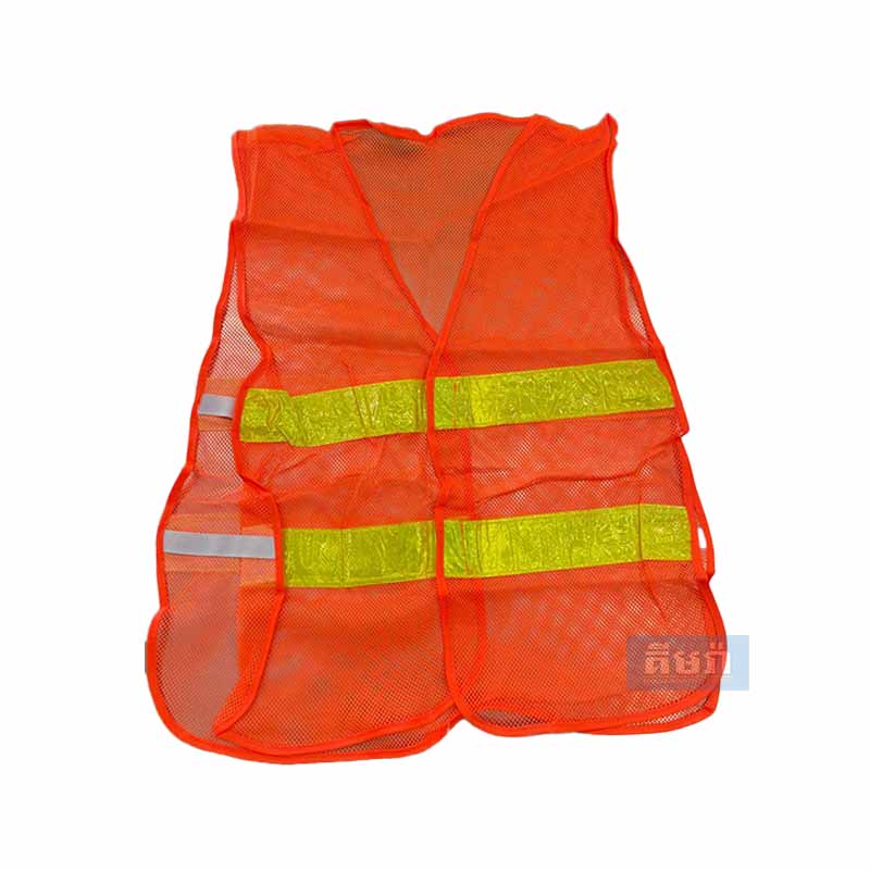 អាវចំណាំងផ្លាត មានរ៉ូត ទឹកក្រូច – Safety Vest Orange