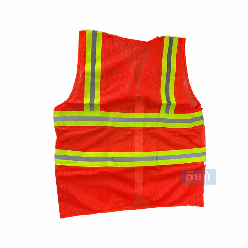អាវចំណាំងផ្លាតខ្វែងខ្នង មានរ៉ូត ទឹកក្រូច – Safety Vest Orange
