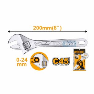 Adjustable Wrench Hand Tool Ingco 8″(200mm) HADW131082 – ម៉ាឡេតដៃ ingco 8″