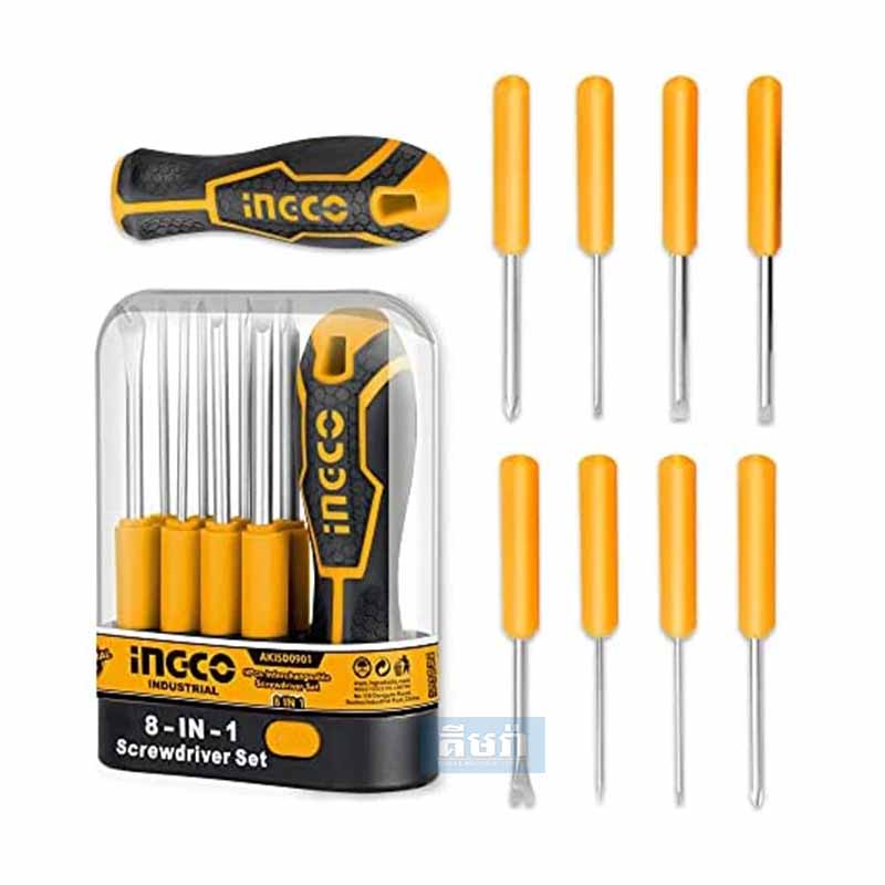 AKISD0901 Ingco 9pcs Screwdriver Set with 1pcs Interchangeable Handle – ទុលណឺវីសឈុត