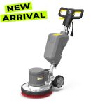 Our very robust single-disc machine BDS 43/150 C Classic offers an excellent price-performance ratio and is very versatile for thorough floor cleaning. With a powerful 1,500 watt motor, it is suitable for both hard and resilient floors and textile coverings as well as for sanding worn parquet floors. With a working width of 430 mm, it is ideal for most applications in the area of building cleaning, whilst the maintenance-free planet carrier made with hard-wearing metal gears ensures a long lifetime and far less wear and lower maintenance costs compared to a belt gear. A pad drive board and medium-hard disc brush are also included in delivery.