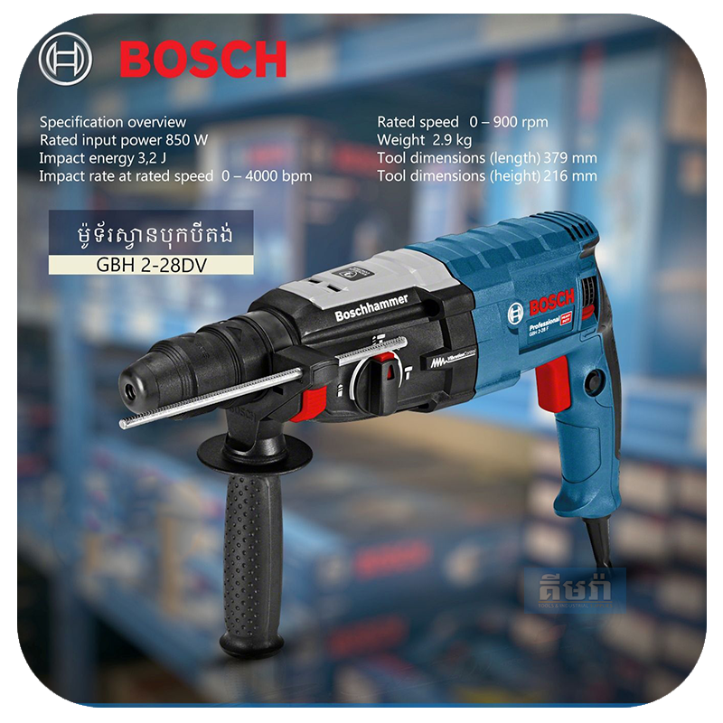 GBH 2-28DV Bosch Rotary Hammer 850W 3.2J – ម៉ូទ័រស្វានបុកបីតង់​ 28លី