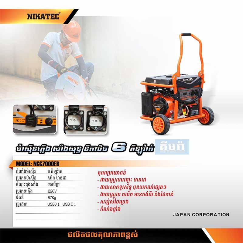 NCG7000EB NIKATEC Gasoline generator (No Battery) – ម៉ាស៊ីនភ្លើង 6 គីឡូវ៉ាត់ស៊េរីថ្មី (មានរុន្ធដោត USB&TYPE C) (មិនមានអាគុយមកជាមួយ)