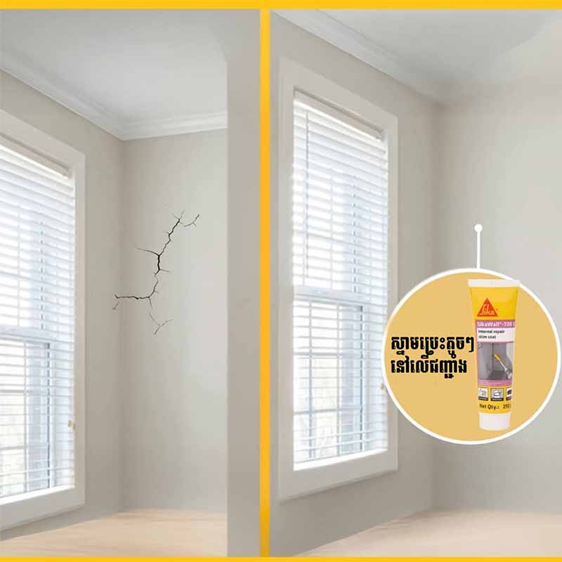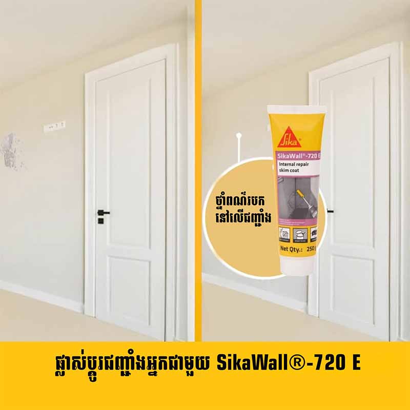 SikaWall® -720E Internal Repair Skim Coat – ថ្នាំស្គីមកូតបៀកផ្ទៃជញ្ជាំងឱ្យរលោងស្អាត
